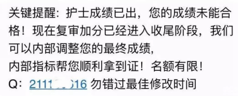 情景1:发邮件或短信给你说你护考没有合格,并且能够帮你改分。