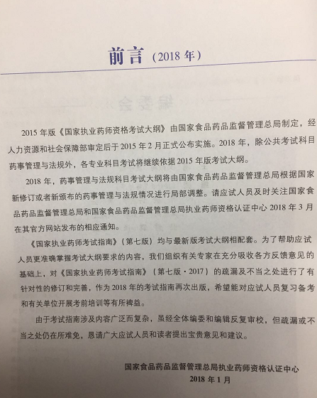 2018年执业药师考试大纲已公布,除公共科目药事管理与法规外,各专业科目考试将继续一级2015年版考试大纲。以下截图来自于最新2018年考试教材前言,给考生们参考!